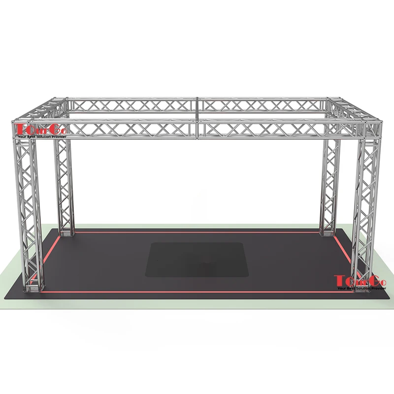 The Trade Show Display Booth Truss System – 20 x 10 x 9 Ft. Ideal for Trade shows, Exhibits, Kiosks, DJ booths, Pop-Up Shops, Retail Spaces, Concerts, Performances, Speeches, and Church Gatherings. TourGo Truss offers reliable staging support systems built to high safety standards. It’s rugged yet lightweight, suitable for mobile or permanent installations.