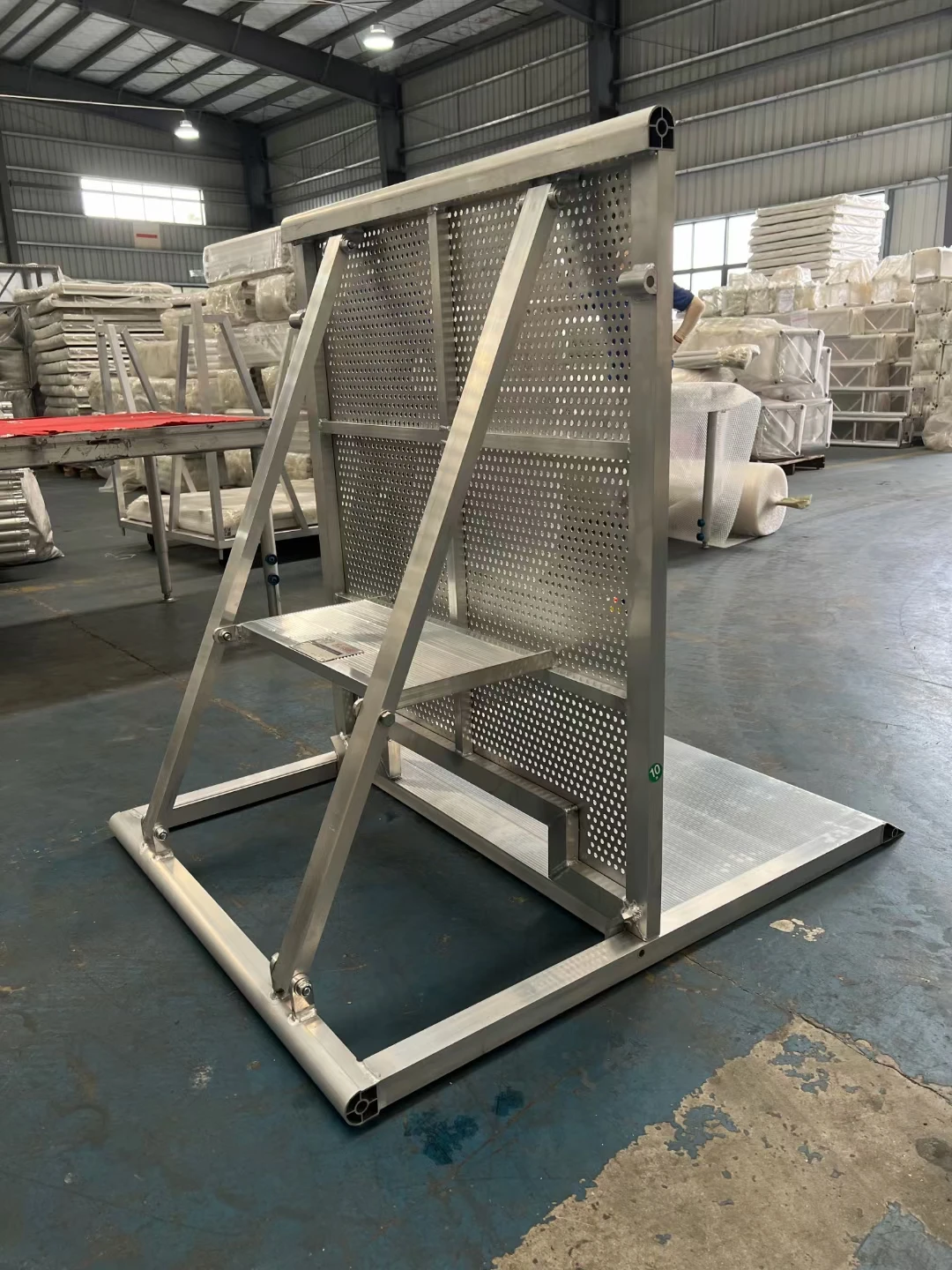 The Aluminum Barrier is a lightweight crowd control system made of aluminum. The Barrier has a self-weight of only 61.72lbs per section . The smooth round top bar and the bottom bar inside of slop incorporate a steel 15 mm slot pin that provides easy connection points for the Barriers. In order to strong the barricade connection, there are also 2 sets interlock and 2 sides bolt connection in case of uneven ground . All profiles have soft, rounded edges for maximum comfort. The design load of the barrier is 10528N/m1.