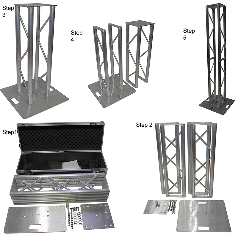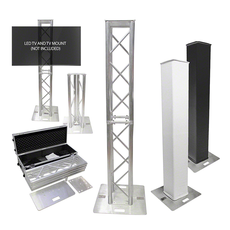 2M Aluminum Steel Truss Totem is an all-in-one kit for the mobile entertainer. The 2 m tall system includes a 2m aluminum flat truss, top and bottom plates, fire retardant scrim, flight cases, and all connecting hardware. Made of lightweight aluminum for easy transportation, setup, and breakdown, it assembles with the same conical connection system as other Truss products.