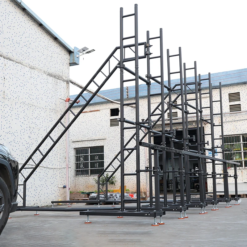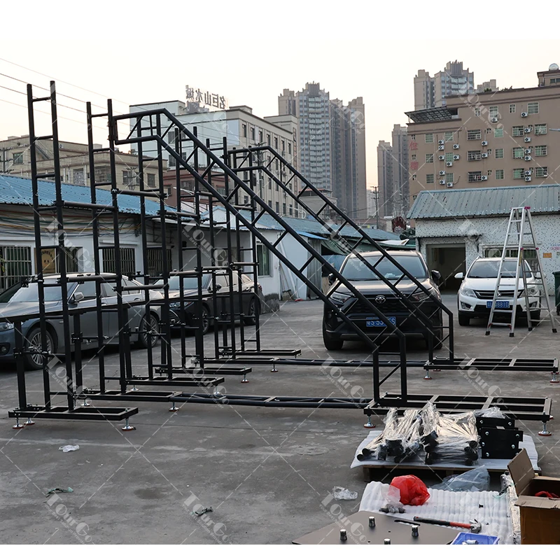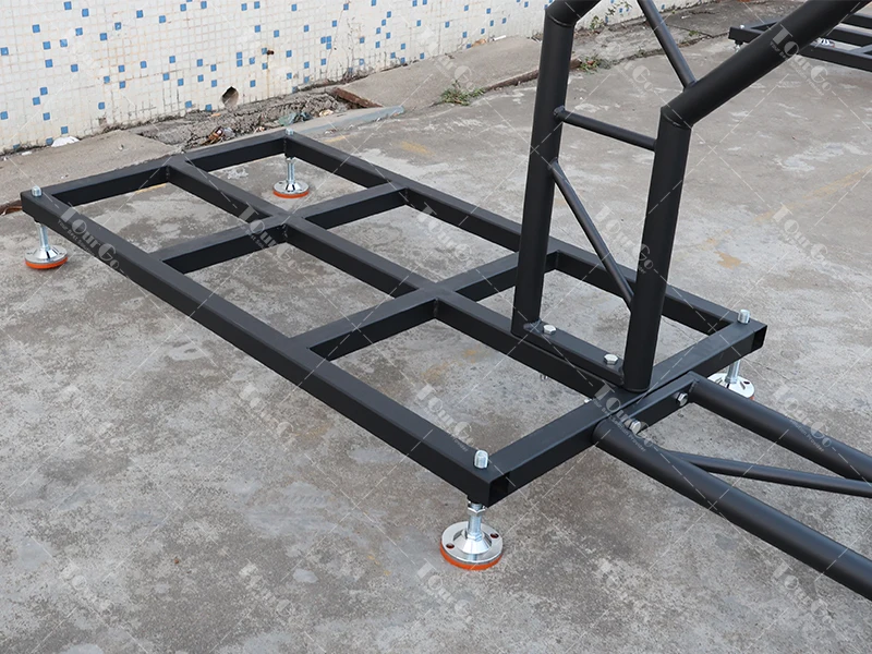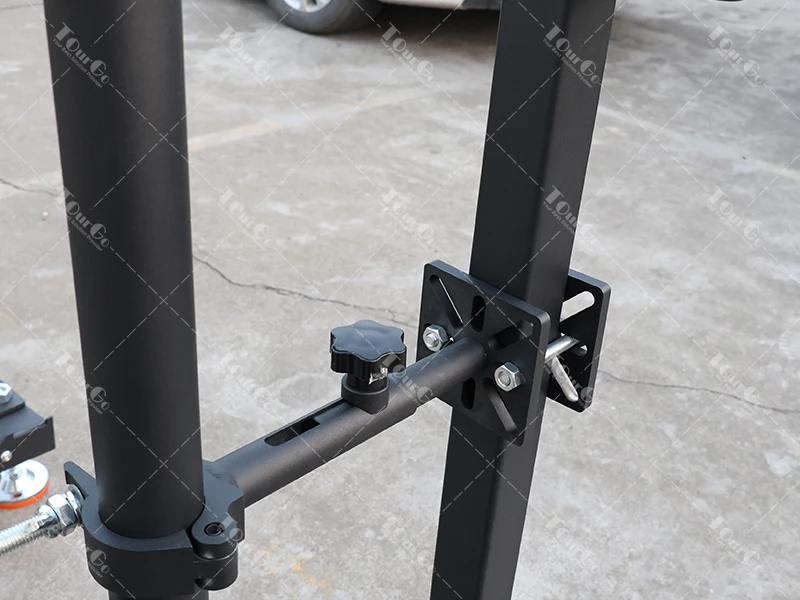 The TourGo LED video wall ground support system is a modular floor standing solution that allows for flexible deployment of your LED wall. This LED Video Wall Ground Support system is a combination of a base-unit, connection bar, and ladder truss that creates a very stable system to support your LED screens in various configurations and offers flexibility in height as well as width.For applications where overhead truss or wall mounting is not available, the Tourgo LED video wall ground support system provides a safe and balanced solution for floor-standing your LED screen. Tourgo hardware is precisely aligned to the panel’s locking position and connections points with fully adjustable bases to provide a sturdy backbone with no visible rigging hardware from the front of the screen. Quick-locks between hardware components allow for tool-free setup with reduced build time and noise. Its modular design can support heights up to 20-ft / 6M with curving capabilities, along with a unique adjustable elevation base to elevate the bottom of your up to 3′ / 1M off the ground.