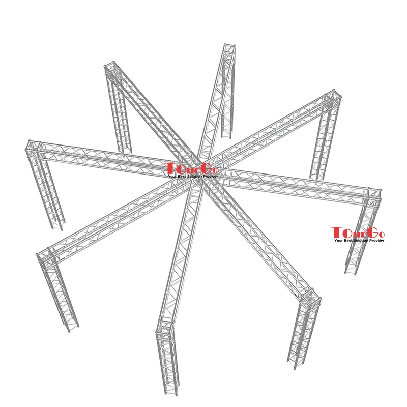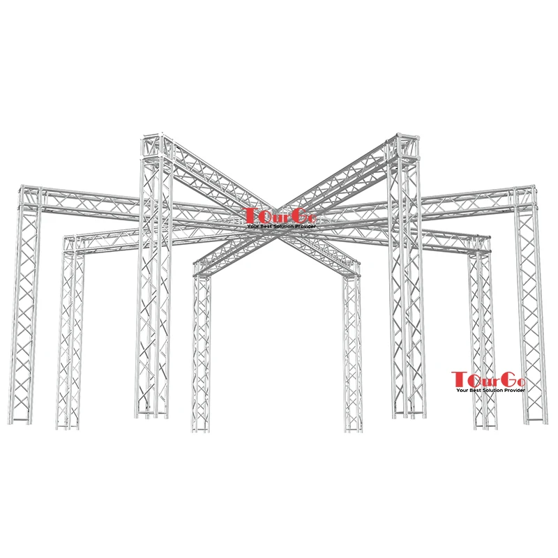 The Spider Trade Show Display Booth Truss System – 9 x 22 Ft.. Ideal for Trade shows, Exhibits, Kiosks, DJ booths, Pop-Up Shops, Retail Spaces, Concerts, Performances, Speeches, and Church Gatherings. TourGo Truss offers reliable staging support systems built to high safety standards. It’s rugged yet lightweight, suitable for mobile or permanent installations.