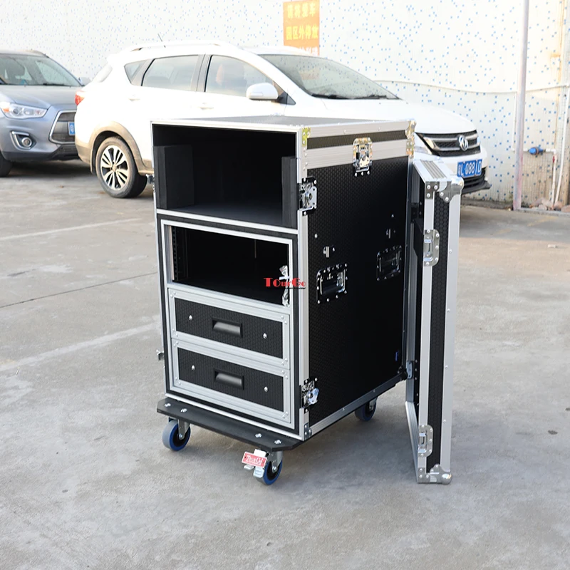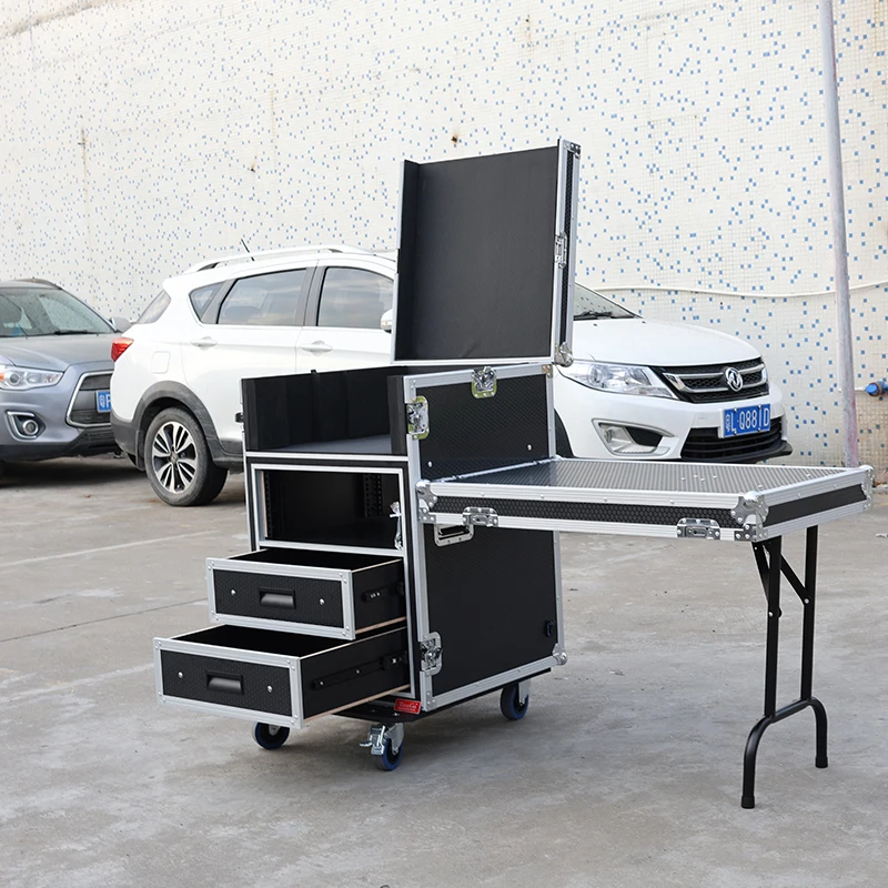 Customized Tech Station Printer Router Production Rack Drawer Flight Case with Side Table