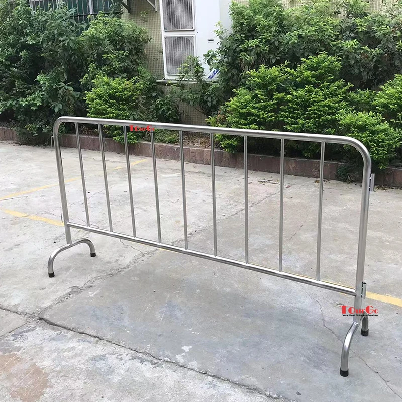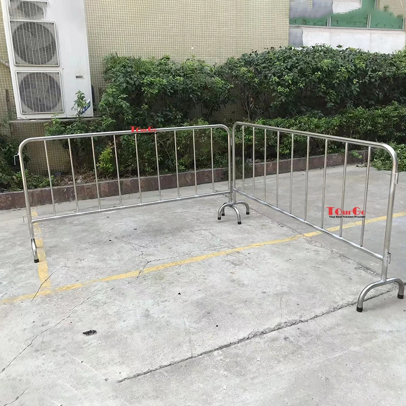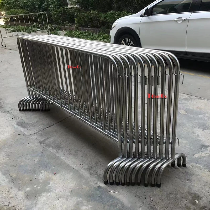The Aluminum Barrier is a lightweight crowd control system made of aluminum. The Barrier has a self-weight of only 62.13lbs per section. The smooth round top bar and the bottom bar inside of slop incorporate a steel 15 mm slot pin that provides easy connection points for the Barriers. In order to strong the barricade connection, there are also 2 sets interlock and 2 sides bolt connection in case of uneven ground . All profiles have soft, rounded edges for maximum comfort. The design load of the barrier is 10528N/m1.