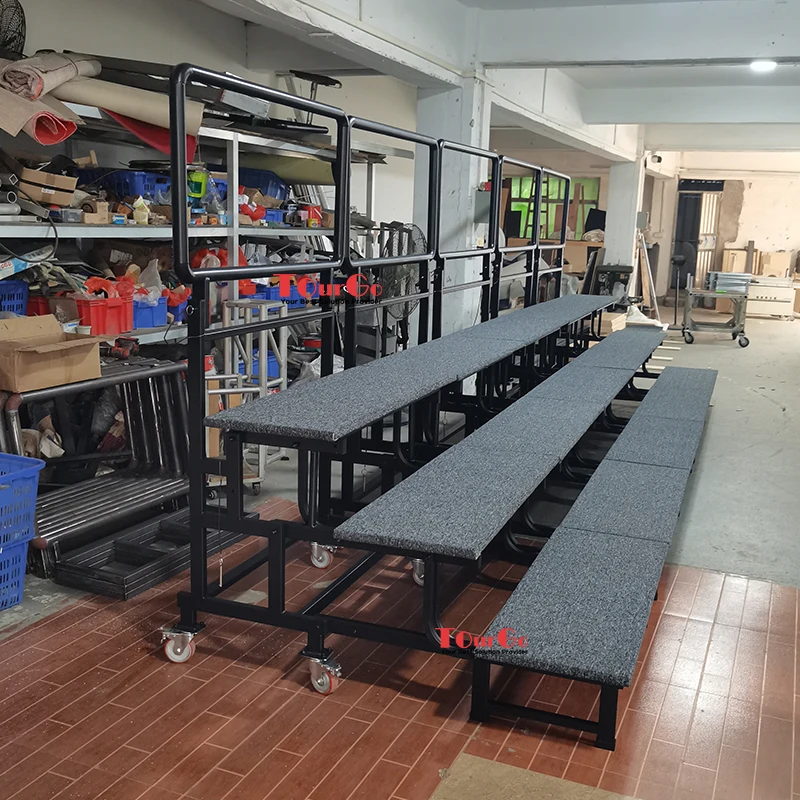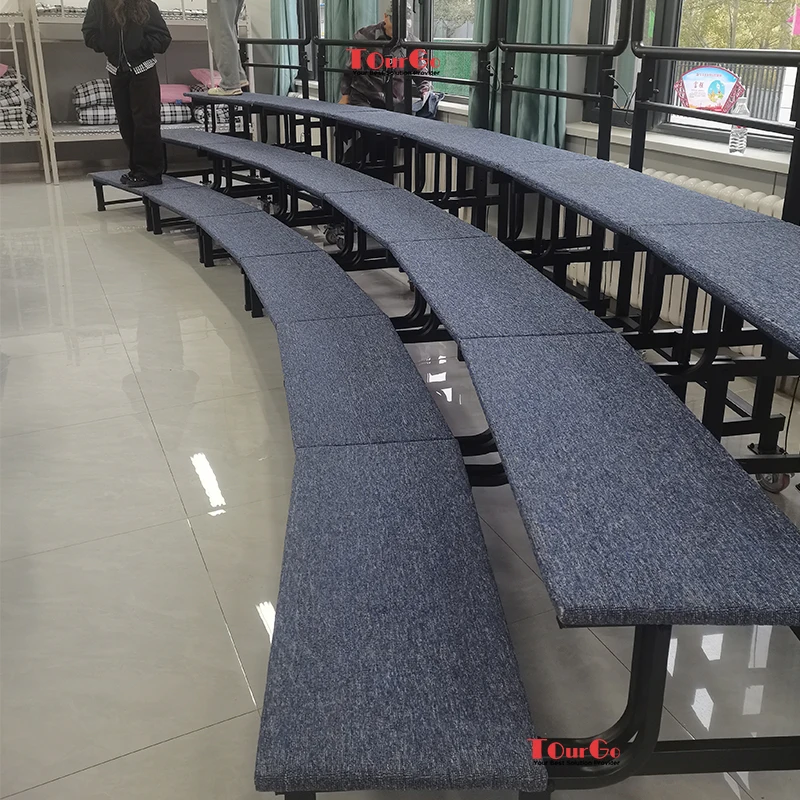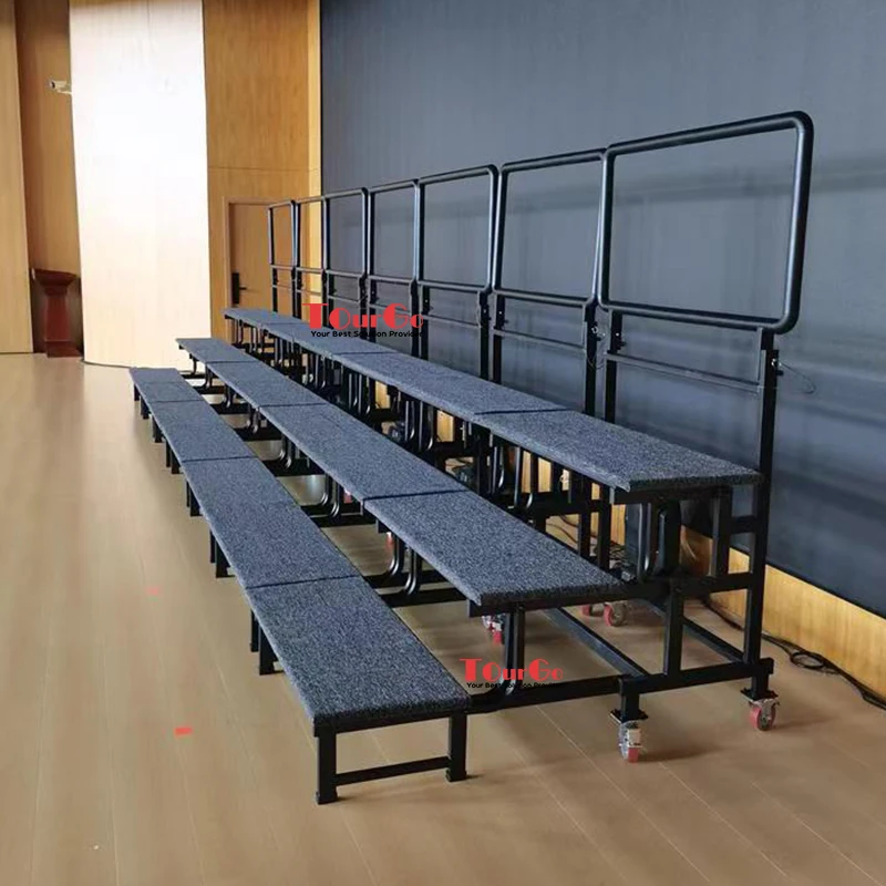 Each set of choir risers is equipped with an integrated safety guardrail of 0.8 meters on the back, which can be folded for convenient storage and movement.