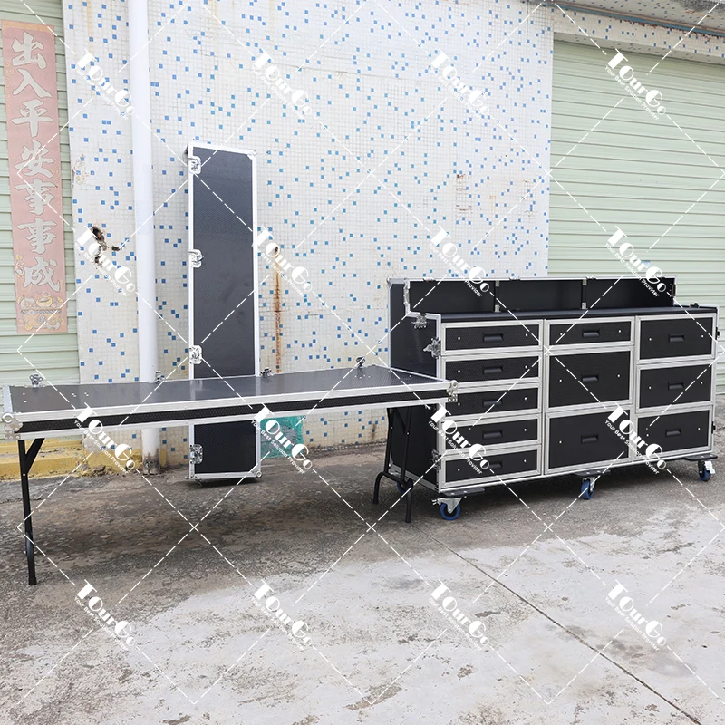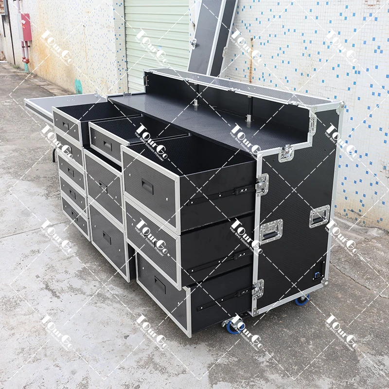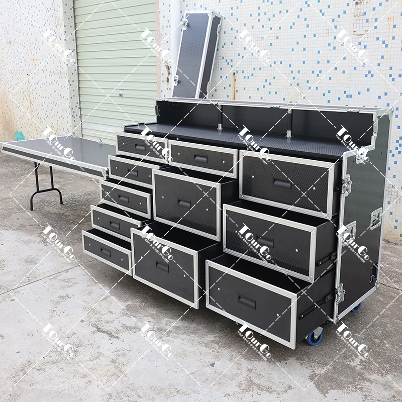 Portable Mobile Customized 11 Drawers Case Trunk Road Case Tool Flight Case With Siding Table and Socket