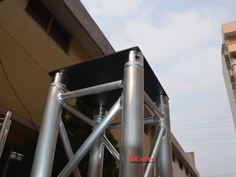 TourGo Truss Totem Kit is a standalone column that is generally used at entertainment venues to support single moving head effect lights. The kit includes a 6.56ft TG34 square truss segment, the SQ300 top plate, the SQ600 aluminum base plate, and an white or black truss cover of the appropriate length.