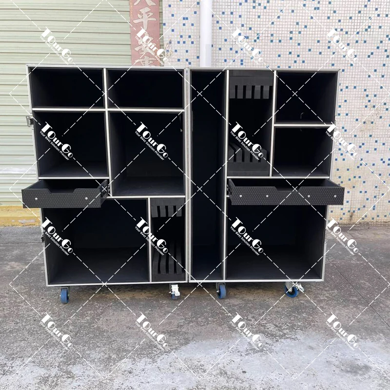 This Drum Kit Road Case can accommodate multiple units of Snares, Kicks, Cymbals, Floors. It also has a separate compartment for the longer and larger hardware like stands which keeps the instrument safe from the scratches. Additional Drawer in this drum kit case provide enough space for storing the smaller hardware safely.