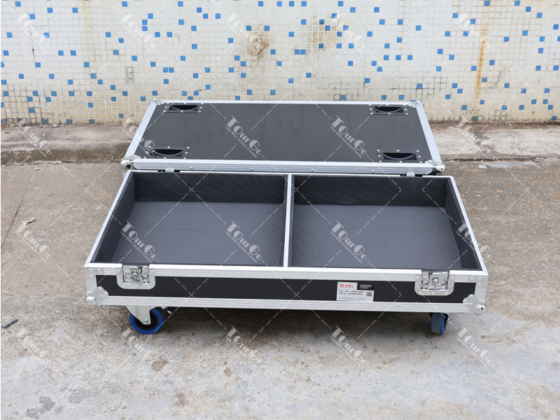 This Speaker Flight Case for 2x DB Technologies Flexsys FMX15 is a custom-molded dedicated protection & transport solution exclusively designed for 2 units of DB Technologies Flexsys FMX15 professional speakers, perfectly solving the pain points of collision, scratch and vibration damage of high-value professional audio equipment during transportation, on-site transfer and storage. Crafted with heavy-duty high-strength frame and wear-resistant impact-proof Honeycomb plyeood , the case features a precision custom high-density EVA shockproof lining that fully fits the contour of DB Technologies Flexsys FMX15 speakers, firmly fixing 2 speakers in independent compartments without shaking or friction, and comprehensively protecting the speaker cabinet, horn, woofer and audio interfaces from all-round damage. The case adopts a sealed waterproof and dustproof structural design, reinforced anti-collision edge wrapping and sturdy metal lock catches, which can resist harsh conditions such as long-distance shipping, stage rough handling and outdoor exhibition storage, effectively extending the service life of professional speakers. Equipped with heavy-duty universal brake wheels and ergonomic push-pull handles, it realizes labor-saving movement and stable braking on various ground surfaces, greatly improving the handling efficiency of audio equipment for stage construction and event layout. With fine surface anti-scratch and anti-rust treatment, the case has excellent durability for long-term indoor/outdoor use, and the internal reserved accessory grid can store speaker cables, connectors and other small parts for classified storage. As a professional audio flight case for B2B bulk supply, we adhere to strict quality control, support customized logo printing, and fully meet the professional transport and protection needs of stage performance teams, audio equipment rental companies, event planning companies and concert venues for DB Technologies Flexsys FMX15 speakers.