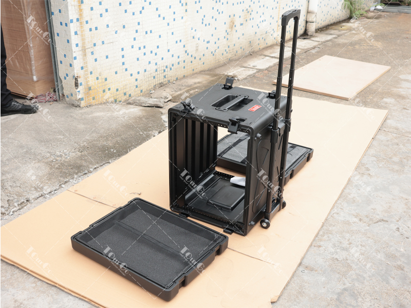 PE 8U Wheeled Trolley Rack Mount Hard Case